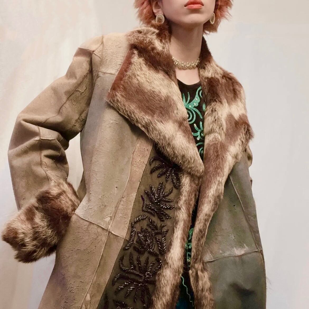 *立体的なビーズ装飾が重厚感もあり大人向けのグランジコートです