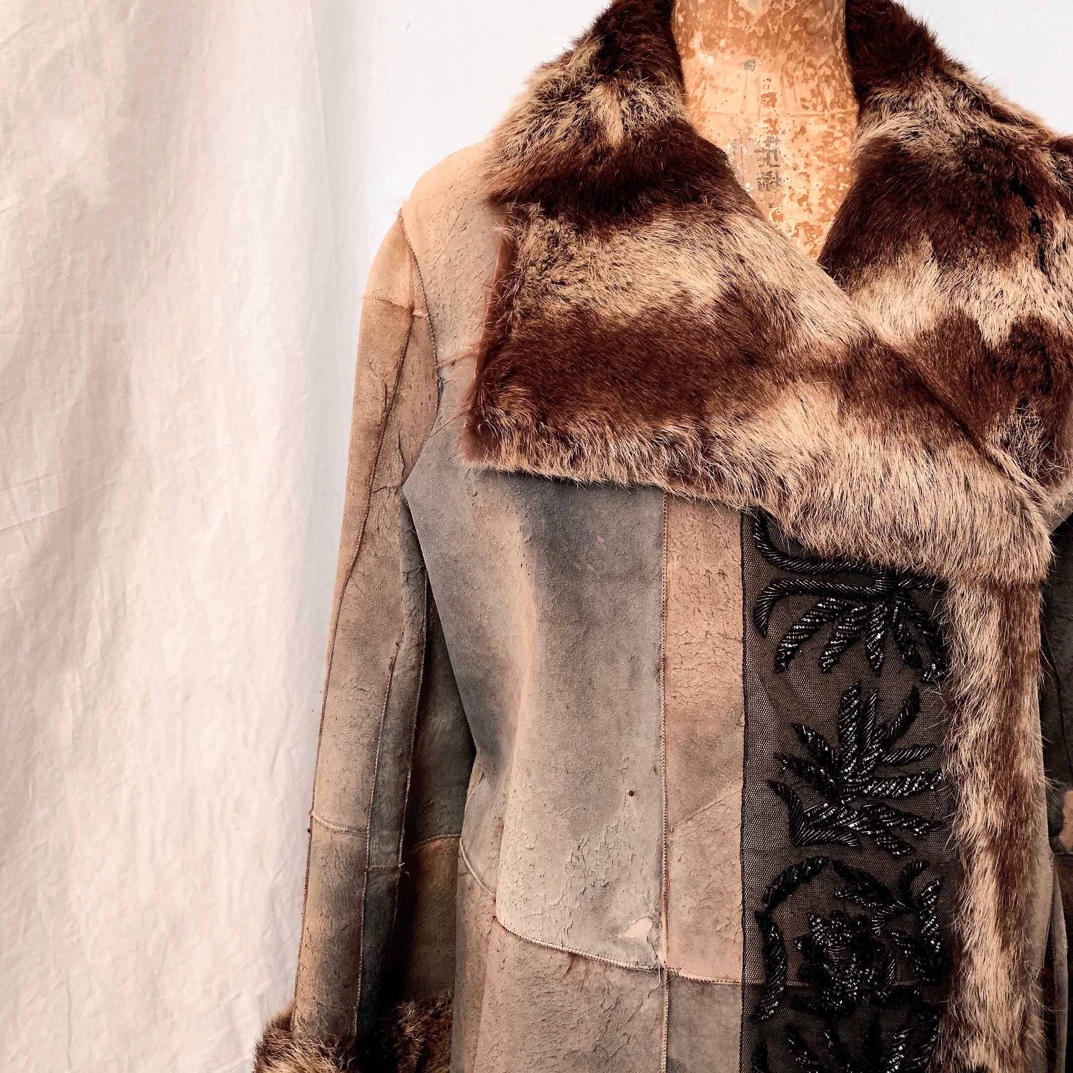 vintage grange leather fur coat