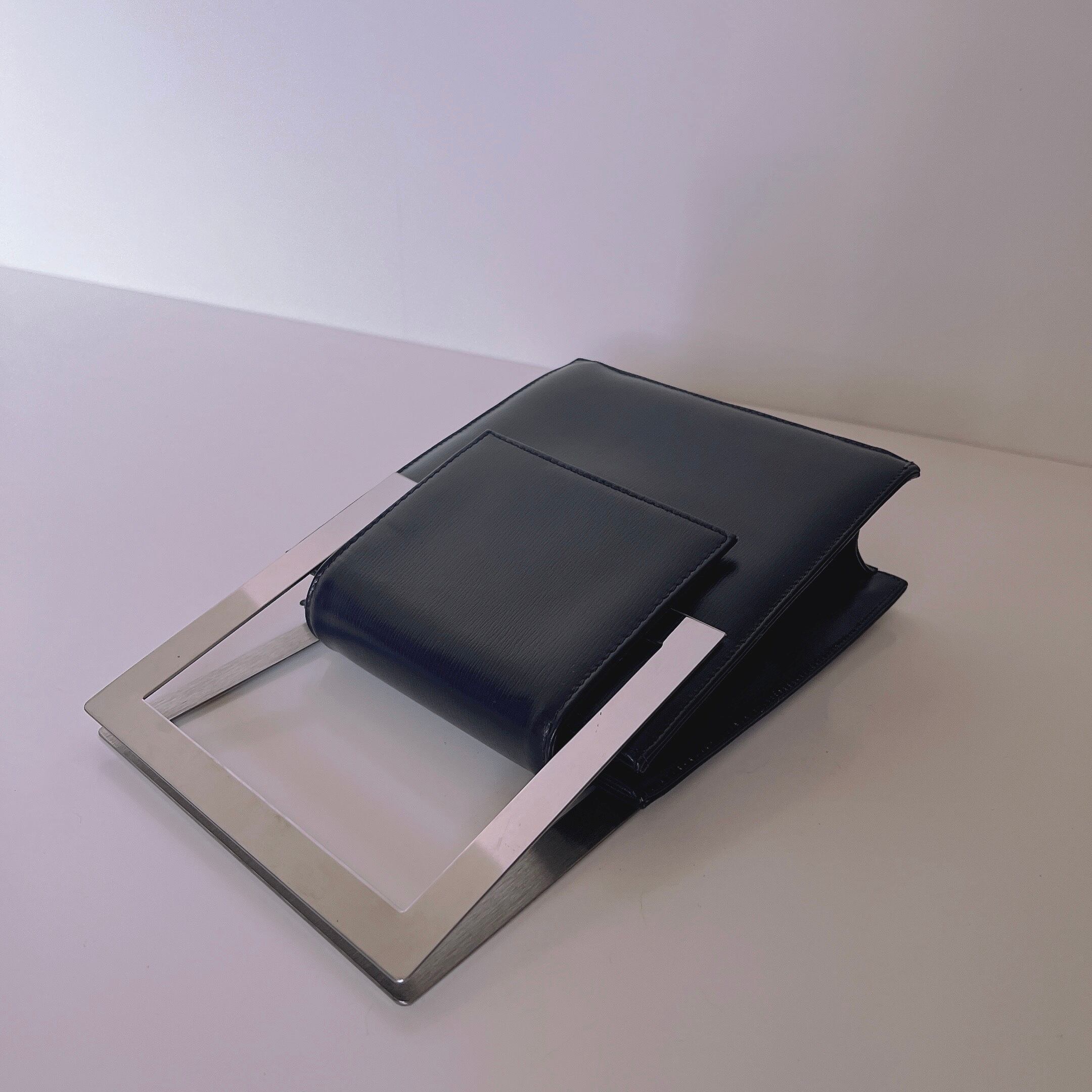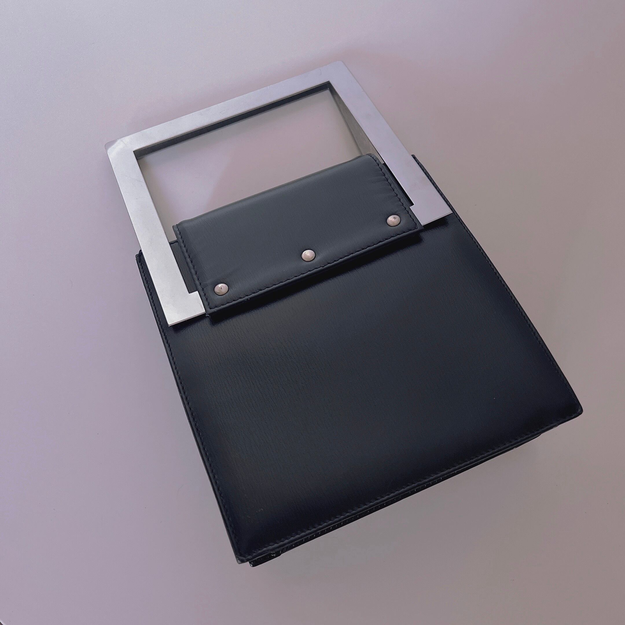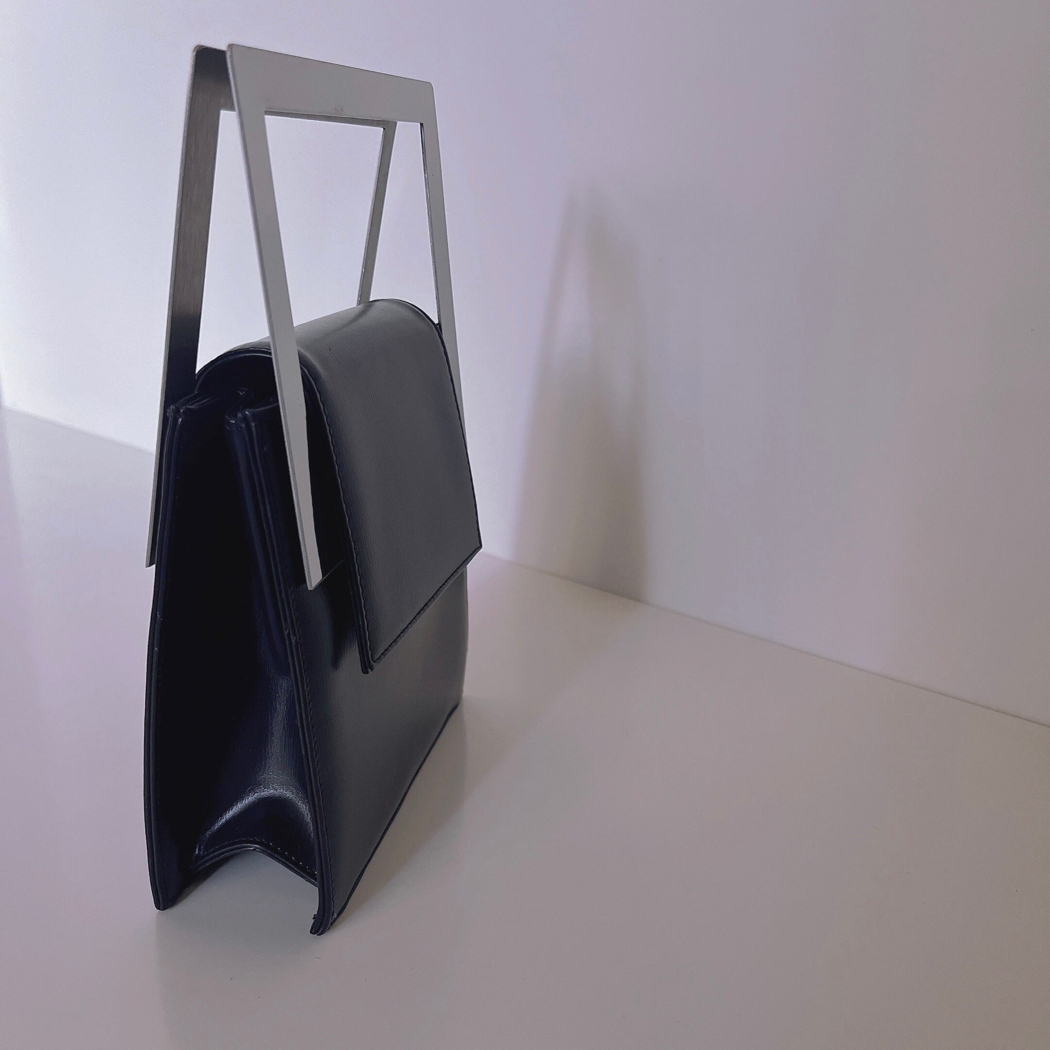 metal handle leather hand bag