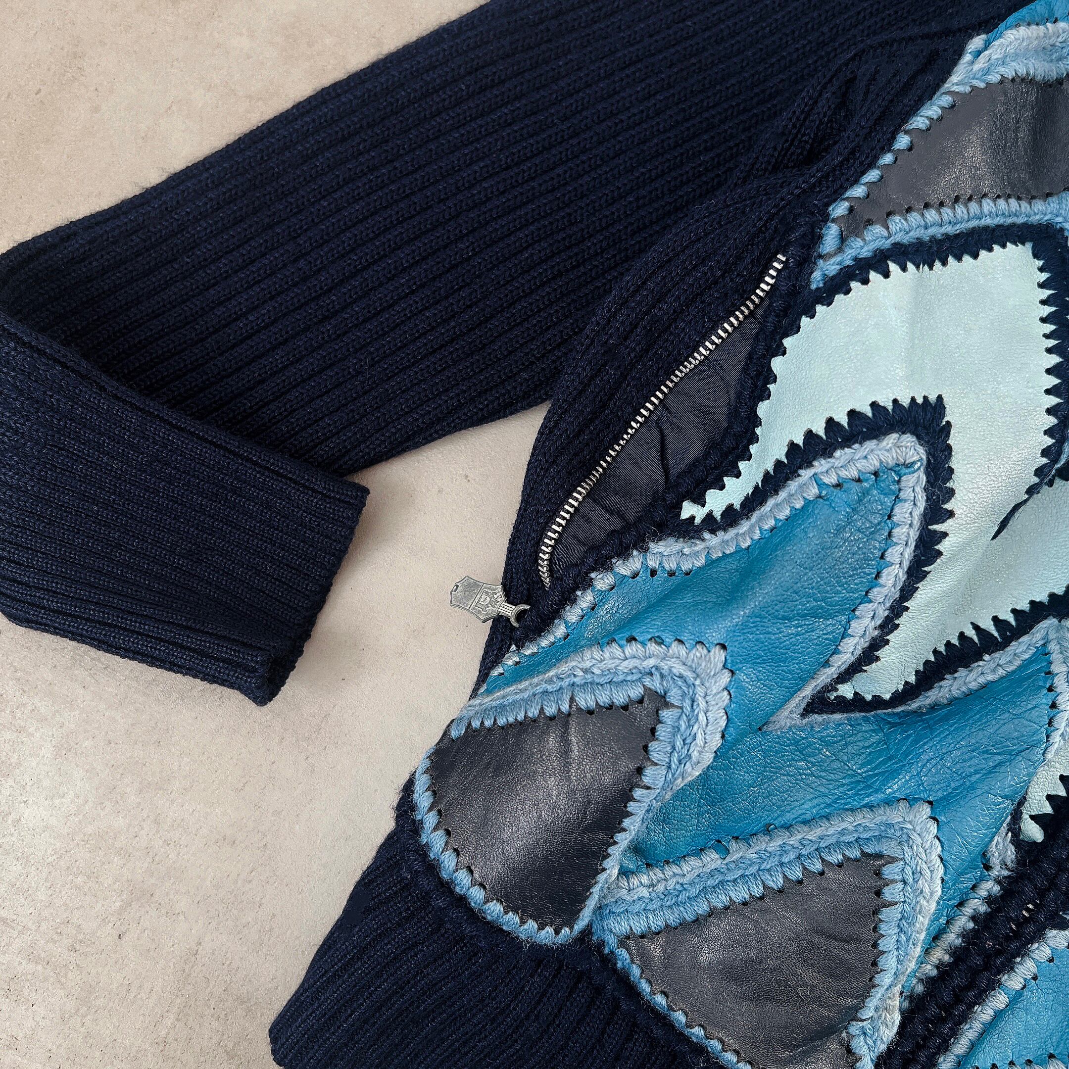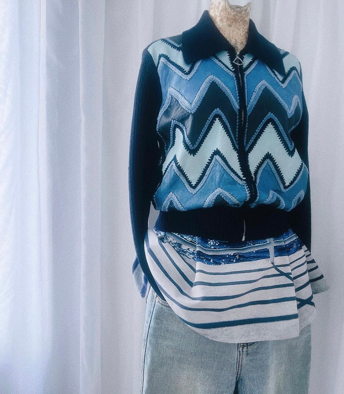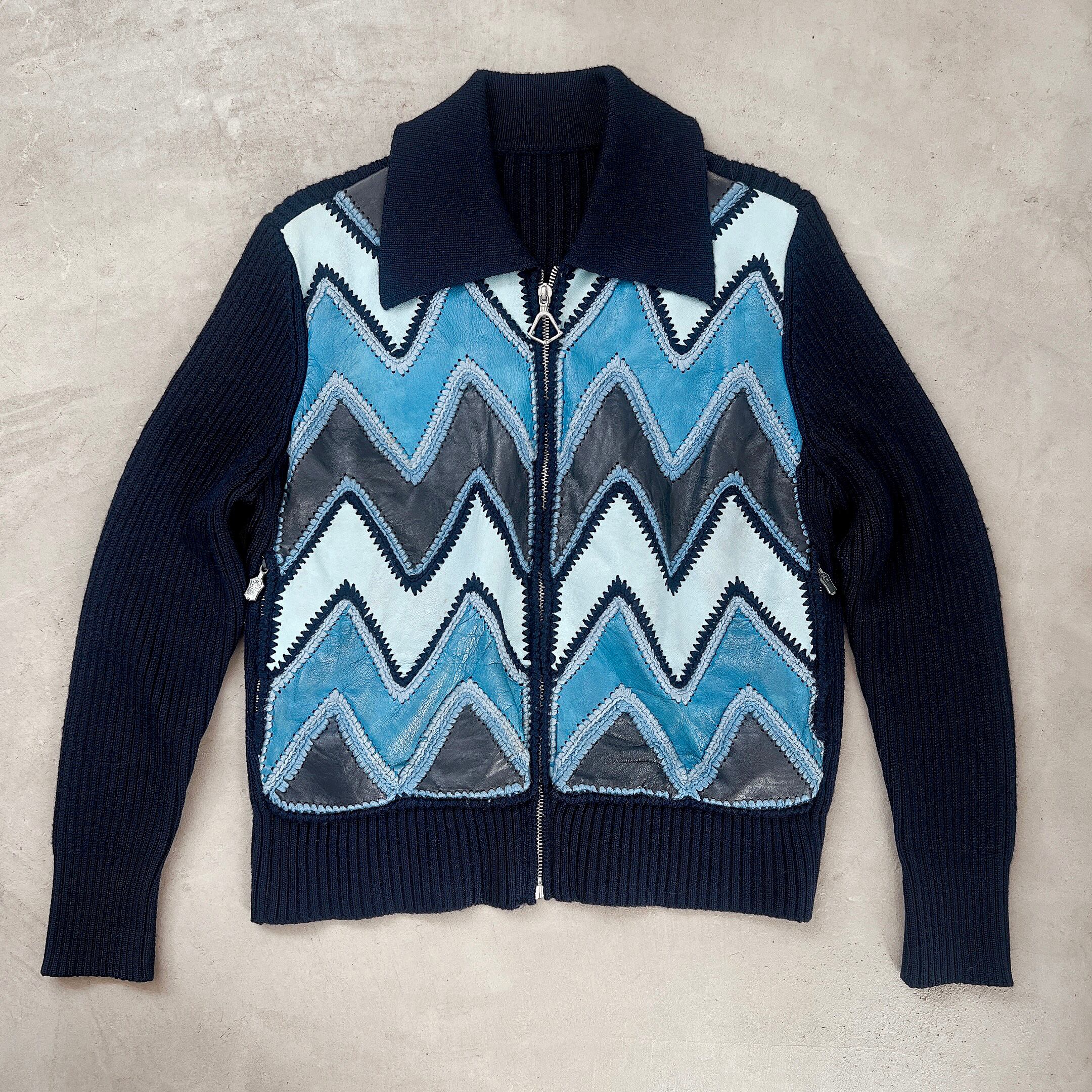 leather combination rib knit jacket